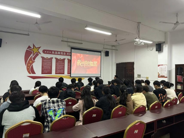 为深入学习贯彻习近平新时代中国特色社会主义思想,宣传贯彻党的二十大精神,进一步传承红色基因、赓续红色血脉,2023年11月13日太阳成集团tyc122cc团总支在明华楼404开展红色观影活动,组织22、23级团支书共同观看《我和我的祖国》。