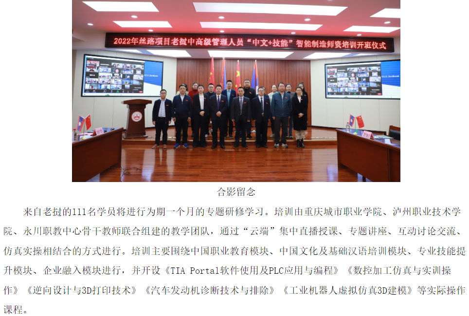 重庆城市职业学院老挝中高级管理人员“中文+技能”智能制造师资培训班顺利开班